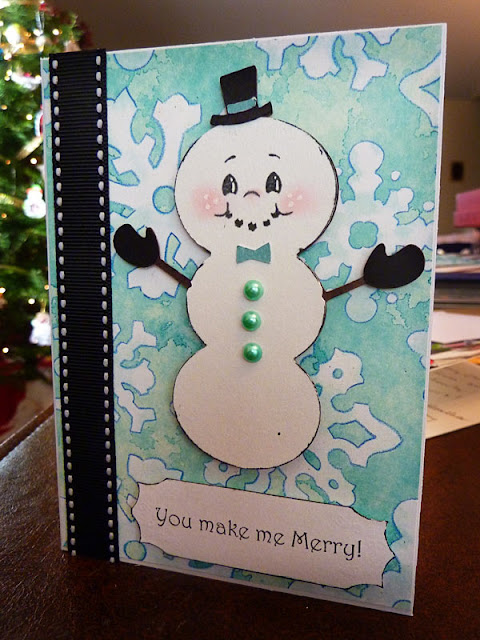 The cuts for all 3 cards were from Winter Frolic. The gingerbread man and snowman got a Peachy Keen face added to them, and some pearl buttons as well. The sentiments were all from my Pink by Design stamps. Just added a little doodling, ribbon, and/or inking to finish them off! Not to bad - 3 cards in under an hour! Love it when they are simple and just fly out like that!