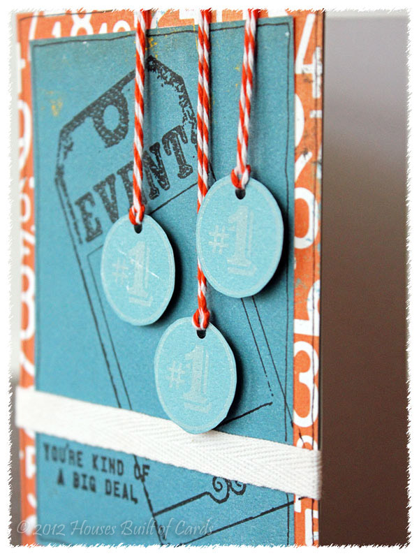 I used the Ippity set "The Best" and stamped the #1 circles in Papertrey Ink's white ink (which as I said one other time is DEFINATELY the best, or maybe only, white ink I have been happy with! It stamps beautifully!) and cut them out by hand.