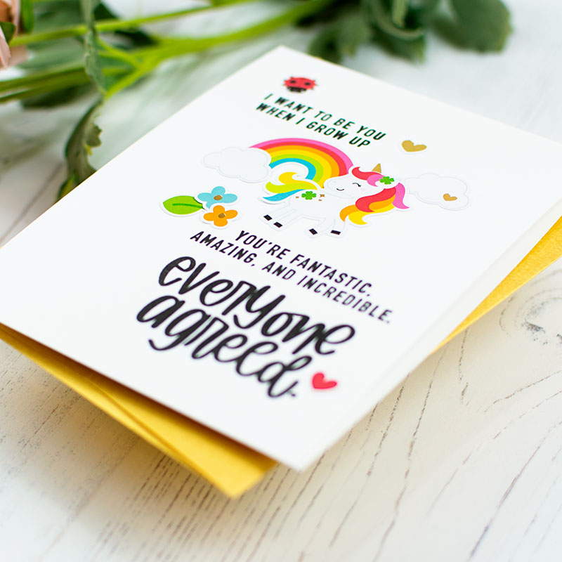 Hello! I'm popping in to share a couple more cards created with the BRAND NEW March Simon Says Stamp Card Kit - Lucky Rainbow! Aside from both the large Amazing Stamp Set, and the super cute small Wooly Lucky stamp set - there are also some adorable Doodlebug stickers, and some gorgeous Lawn Fawn pattern papers! And of course, lots of cardstock, some pretty envelopes, some shaker fillings, and a hybrid ink cube!