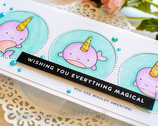 Good morning! This past weekend I pulled out a fun couple of sets from Simon Says Stamp, and created this magical little slimline card! I love these cute little Narwhals - so fun to stamp and color!