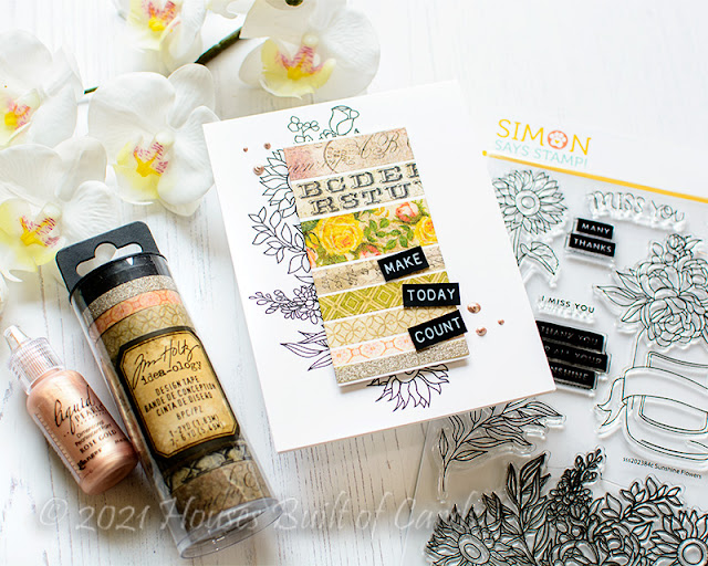 Hello! I'm here today to share my first card with the BRAND NEW September 2021 Simon Says Stamp Card Kit - Sunshine Flowers! This month's kit has such a fun vintage vibe, with some beautiful florals! The included stamp set by the same name has some lovely floral images and perfect sentiments, there is ANOTHER beautiful stamp set with a HUGE and gorgeous floral image, a great birthday word die, there is some super cute pattern paper, a fun set of washi tapes - that's all not to mention the cardstock, envelopes, and more!