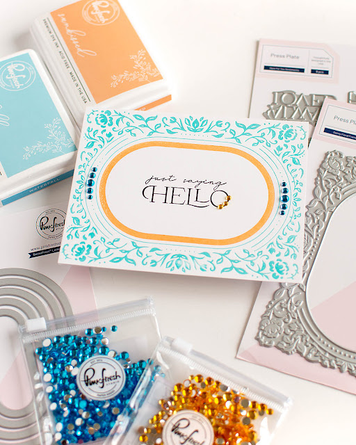ReplyDeleteHi Heather. This release is so amazing. I am up to you on the hop, and it is inspiring to see so many ways this release can be combined so seamlessly. First, the Re-inker case and the 1-inch Brushes are so luxurious. Anyone would be proud to display them in their crafty space. I love all your cards. I am especially fond of the “just saying HELLO” card. I have never been drawn to ovals, but this release has changed that. I love how you placed the gems on the side of the oval and on the side of the “O”. I also like your set of three cards featuring the Dainty Floral Frame. Several placed in a similarly decorated box with a silk ribbon would make a very special gift for someone who loves to correspond. Thank you for all you do for PinkFresh.