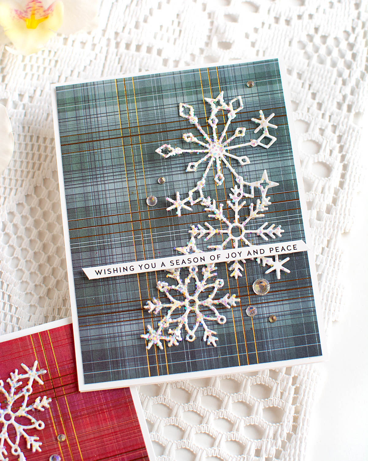 Gems in Opal, that were the perfectly complement to the snowy effect! Here are more photos of these finished cards: